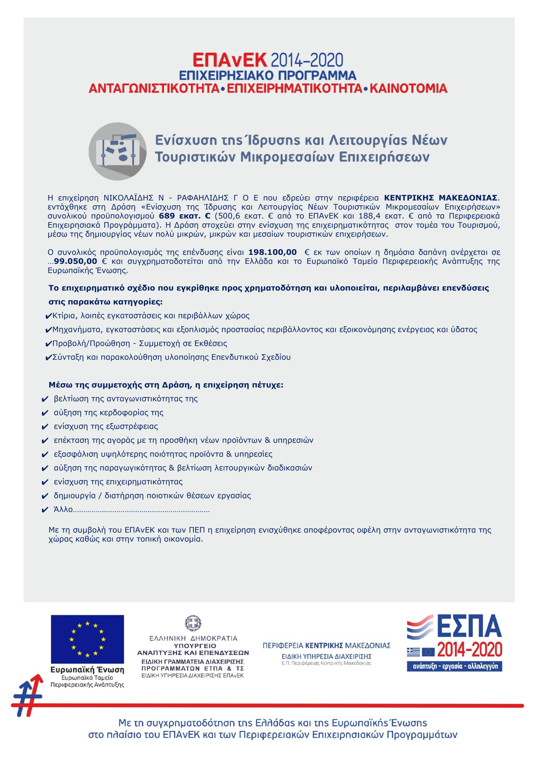 Ενίσχυση της Ίδρυσης και Λειτουργίας Νέων Τουριστικών Μικρομεσαίων Επιχείρήσεων